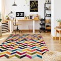 Tapis salon est idéal pour la décoration de la maison. Aux motifs Géométrique, tapis salon a été sélectionné pour son visuel, ses couleurs, mais aussi pour sa qualité. Il habillera à merveille tous types d'intérieur qu'ils soient modernes ou classiques. tapis entrée 40x60 tissé multicolore rectangle motif géométrique CHEVRON