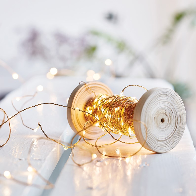 - Sur cette bobine de bambou fabriquée à la main au Vietnam, s’enroule un délicat fil de cuivre orné de 125 Leds.
