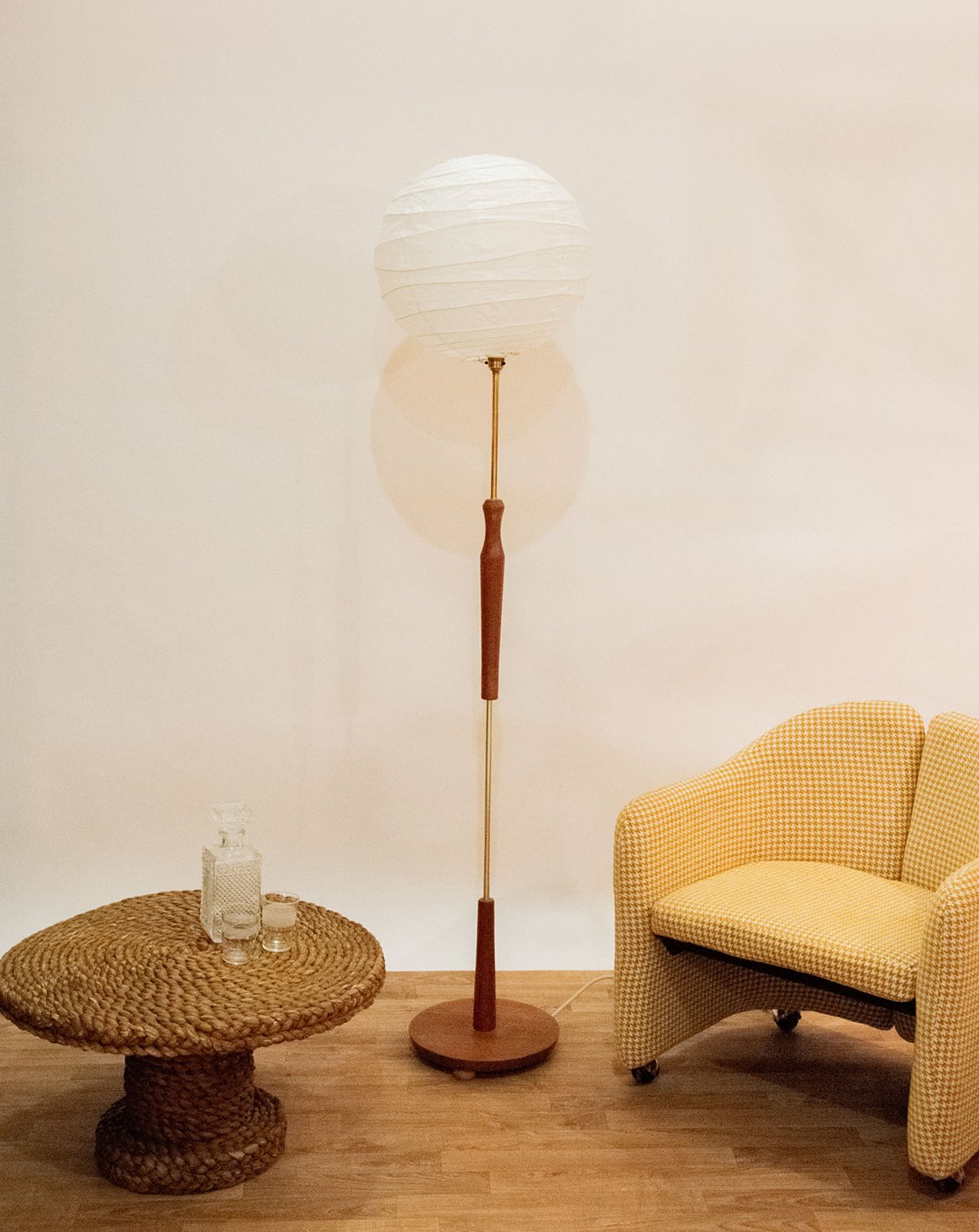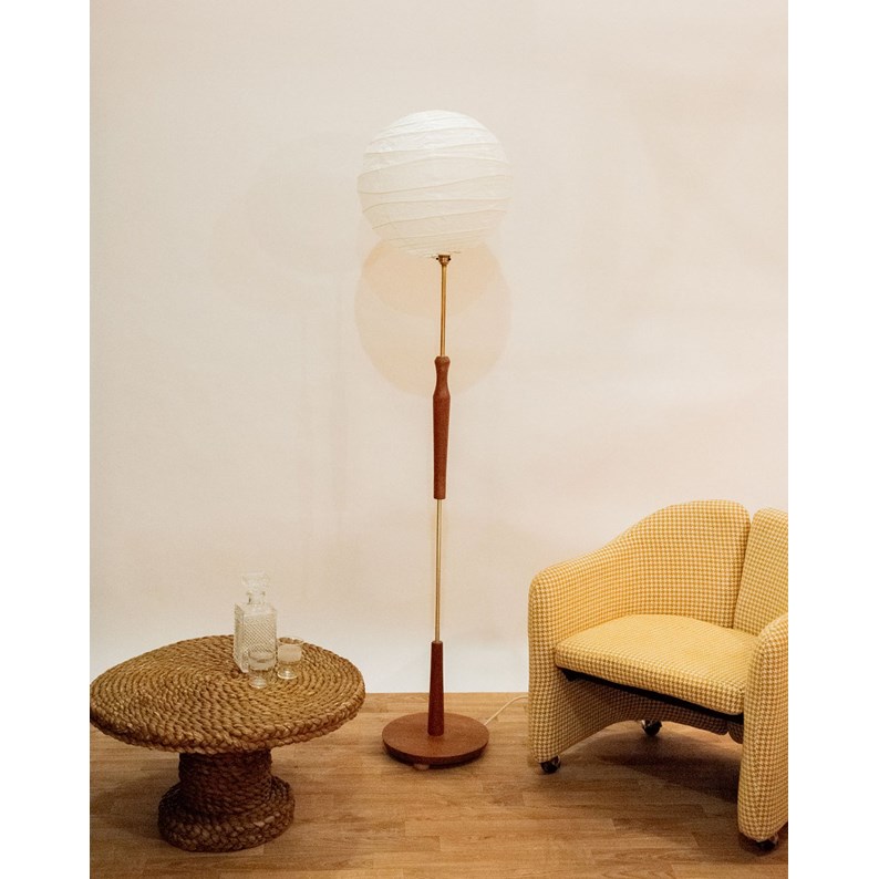 Ce lampadaire allie élégance et design raffiné avec sa structure en bois et métal doré. Son abat-jour en boule chinoise blanche diffuse une lumière douce et chaleureuse. Idéal pour sublimer un salon, une chambre ou un bureau, il apporte une touche décorative originale. Sa combinaison de matériaux crée un contraste subtil et sophistiqué. Une pièce à la fois pratique et esthétique qui rehausse l’ambiance de votre intérieur.