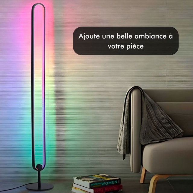 Le lampadaire Long Scoop RGB est unique en son genre. Le design moderne de la lampe lui permet de s’adapter à un large éventail de style d’habitat et de décoration. Sa forme d’ellipse donnera une touche de modernité à votre pièce. Elle intègre une lumière LED RGB qui donne un éclairage lumineux et coloré.