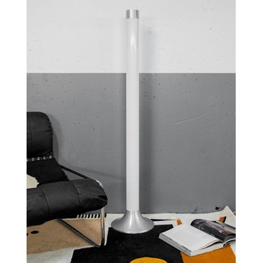 Apportez une touche néo-futuriste avec ce lampadaire néon tubulaire des années 80, inspiré du modèle 4041 de Nanda Vigo pour Kartell. Son plastique blanc et son tube en plexiglass diffusant, reposant sur un socle circulaire et couronné d'un capuchon en métal brossé argenté, forment une silhouette élancée et stable, idéale pour structurer un coin salon ou éclairer un angle lecture. Son graphisme lumineux crée une ambiance contemporaine, à la fois sculpturale et discrète.