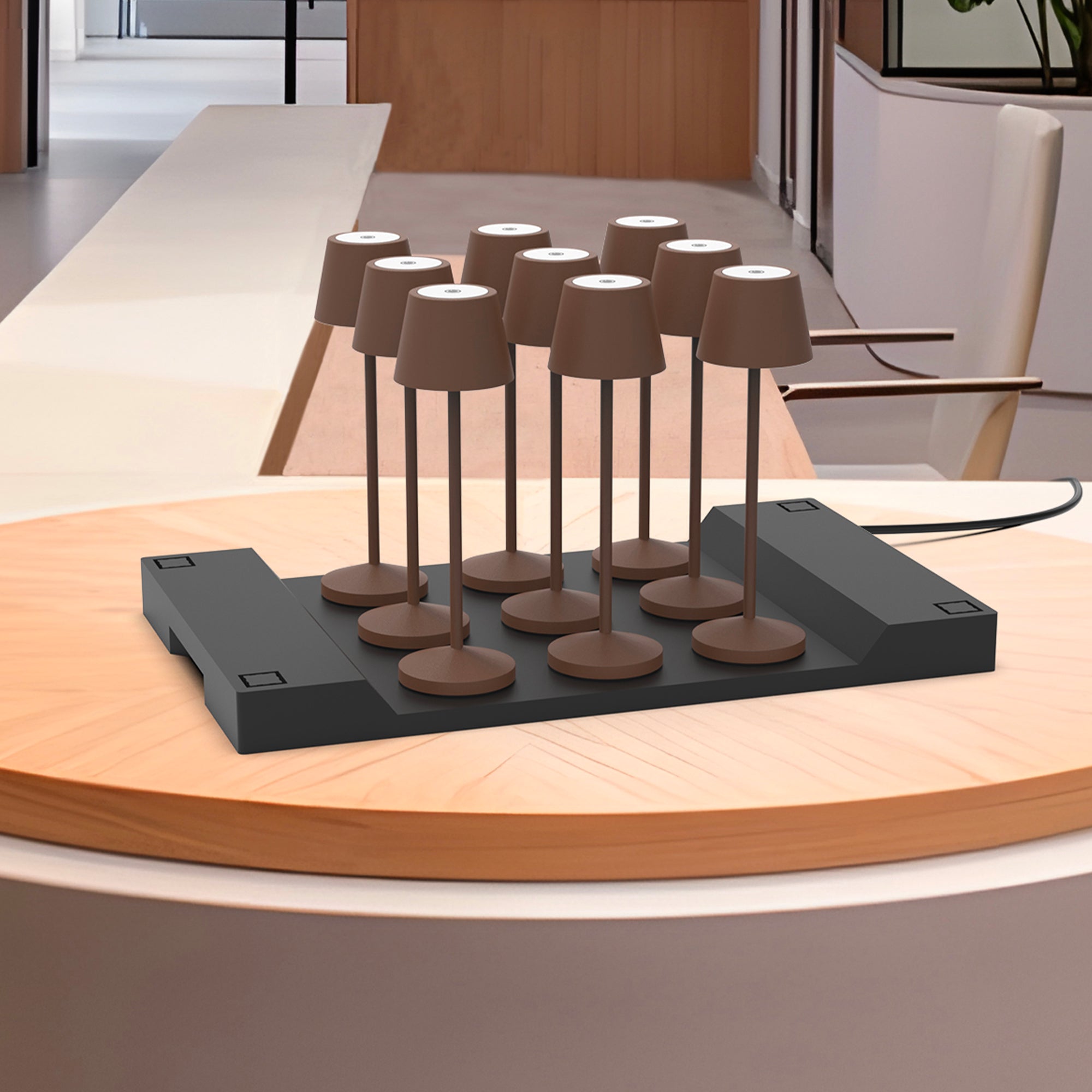 - LOT DE 9 LAMPES DE TABLE SANS FIL AVEC PLATEAU DE CHARGEMENT INCLUS : Illuminez vos espaces avec style grâce au pack de 9 lampes Emily Vintage, parfait pour ceux qui recherchent un éclairage flexible et pratique. En plus de la lampe sans fil, ce pack inclut un plateau de chargement permettant de recharger toutes les unités simultanément. Les lampes Emily Vintage allient élégance et haute technologie avec leur conception portable, adaptées aussi bien pour l'intérieur que l'extérieur.