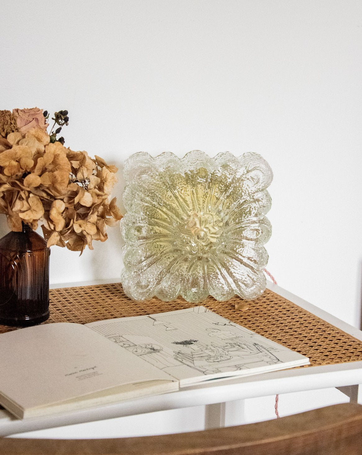 Sublimez votre intérieur avec cette lampe d'ambiance artisanale, entièrement refaite et proposée comme pièce unique, au verre carré texturé et socle doré pour une allure délicate et contemporaine; son intérieur repeint apporte une réflexion dorée qui diffuse un halo lumineux chaleureux, idéal en applique ou posée sur un meuble pour une atmosphère feutrée. Pratique, elle se branche sur prise grâce à son accroche arrière et son câble torsadé rose pâle avec interrupteur en ligne, fournie avec ampoule G9 25W 2700K et conforme aux normes CE.