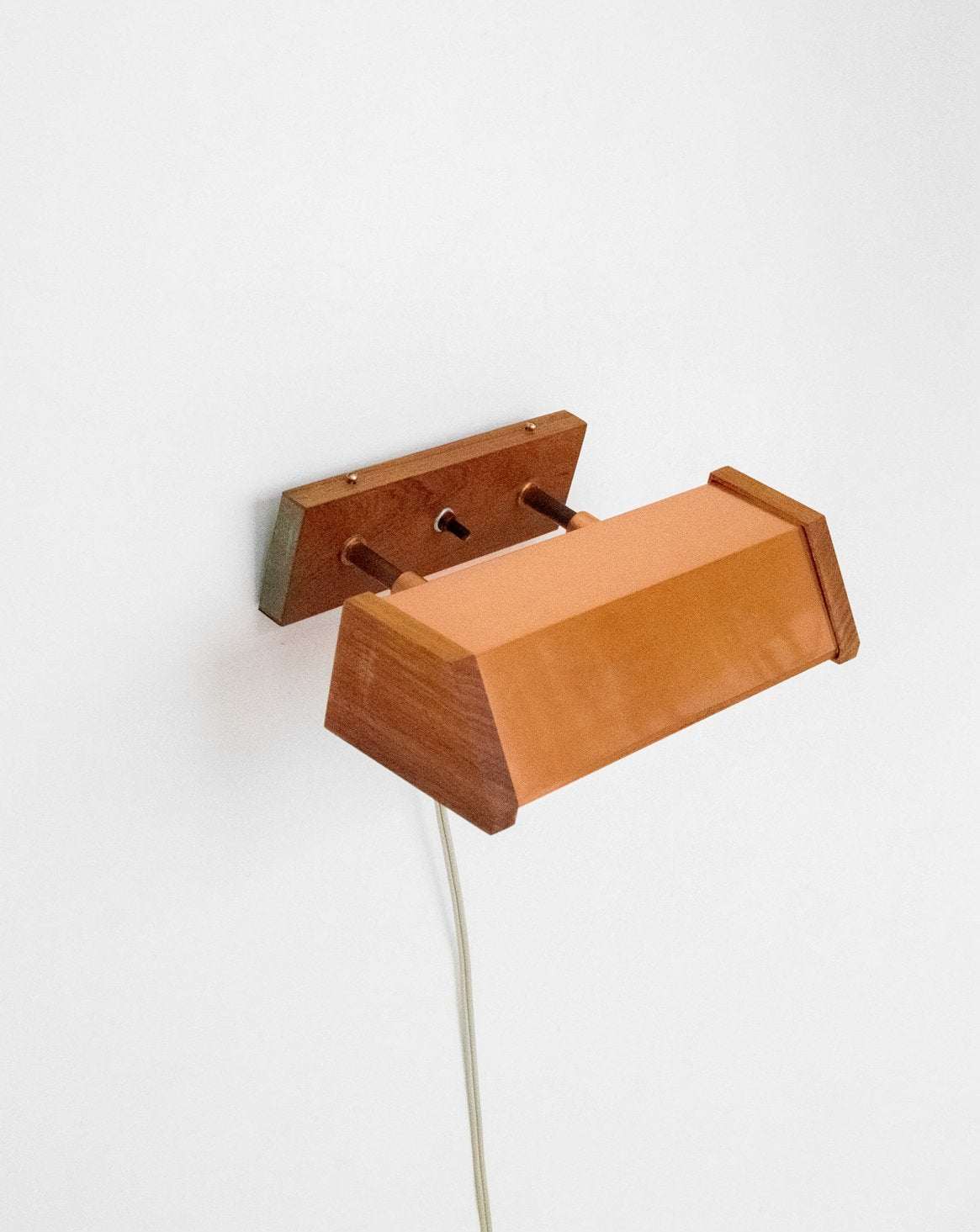 Découvrez cette applique attribuée à Jo Hammerborg estampillée Fog & Morup (modèle Fuga). Cette pièce des années 1960 mêle cuivre patiné et palissandre chaleureux. Articulable, elle permet d'orienter la lumière avec précision, idéale en lecture près d'un fauteuil ou comme éclairage d'appoint pour créer une ambiance rétro et raffinée, tandis que son équilibre de matériaux évoque le design scandinave intemporel. Étiquette ""Made in Danmark"" attestant son origine. Manque un placage sur un petit côté de la fixation murale.