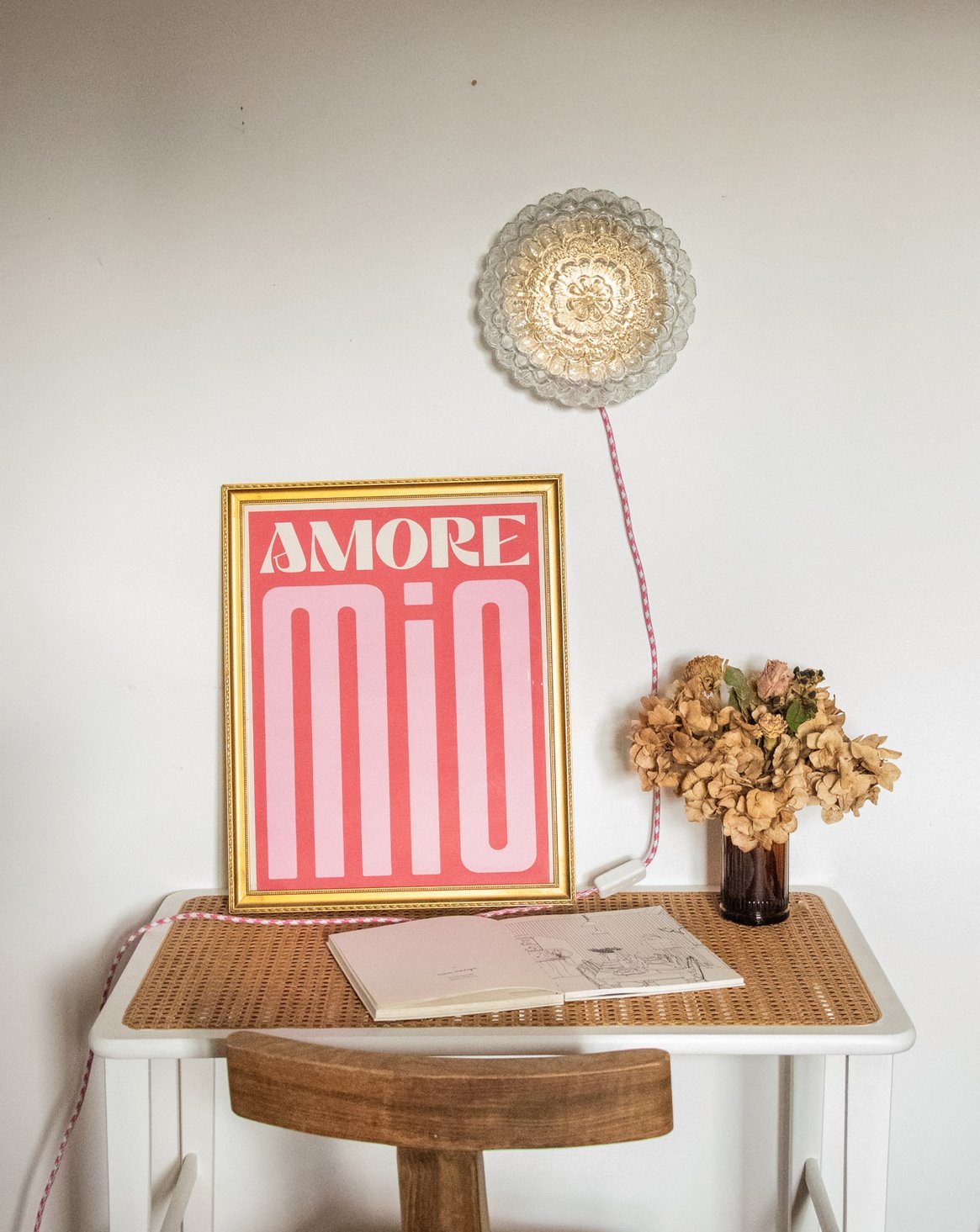 Découvrez cette lampe d'ambiance artisanale, pièce unique entièrement refaite, qui diffuse un halo lumineux sunbeam grâce à son globe rond en verre texturé et à son intérieur repeint d'une réflexion dorée. Revisitée électriquement (interrupteur et ampoule fournis, normes CE), elle se branche simplement sur une prise et s'accroche ou se pose selon l'envie ; le socle chromé et le câble rose et blanc à motifs apportent une touche contemporaine et délicate. Fournie avec ampoule G9 25W 2700K et patins neufs pour une mise en scène immédiate.