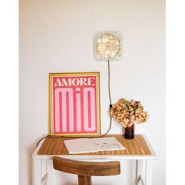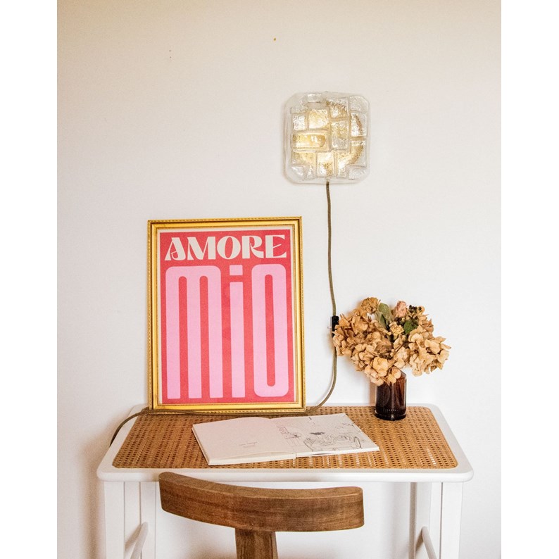 Découvrez cette lampe d'ambiance unique, entièrement remise à neuf par un travail artisanal : globe en verre clair, intérieur repeint doré et socle doré rehaussent la réflexion de la lumière, tandis que le câble torsadé miel et les détails noirs lui confèrent une élégance sobre. L'électricité a été refaite, elle est fournie avec une ampoule G9 25W 2700K et dispose d'un câble long avec interrupteur au pied ; accroche arrière et patins neufs permettent de la suspendre ou de la poser. Compacte et chaleureuse, elle diffuse une lumière douce idéale pour une table de chevet ou une étagère.