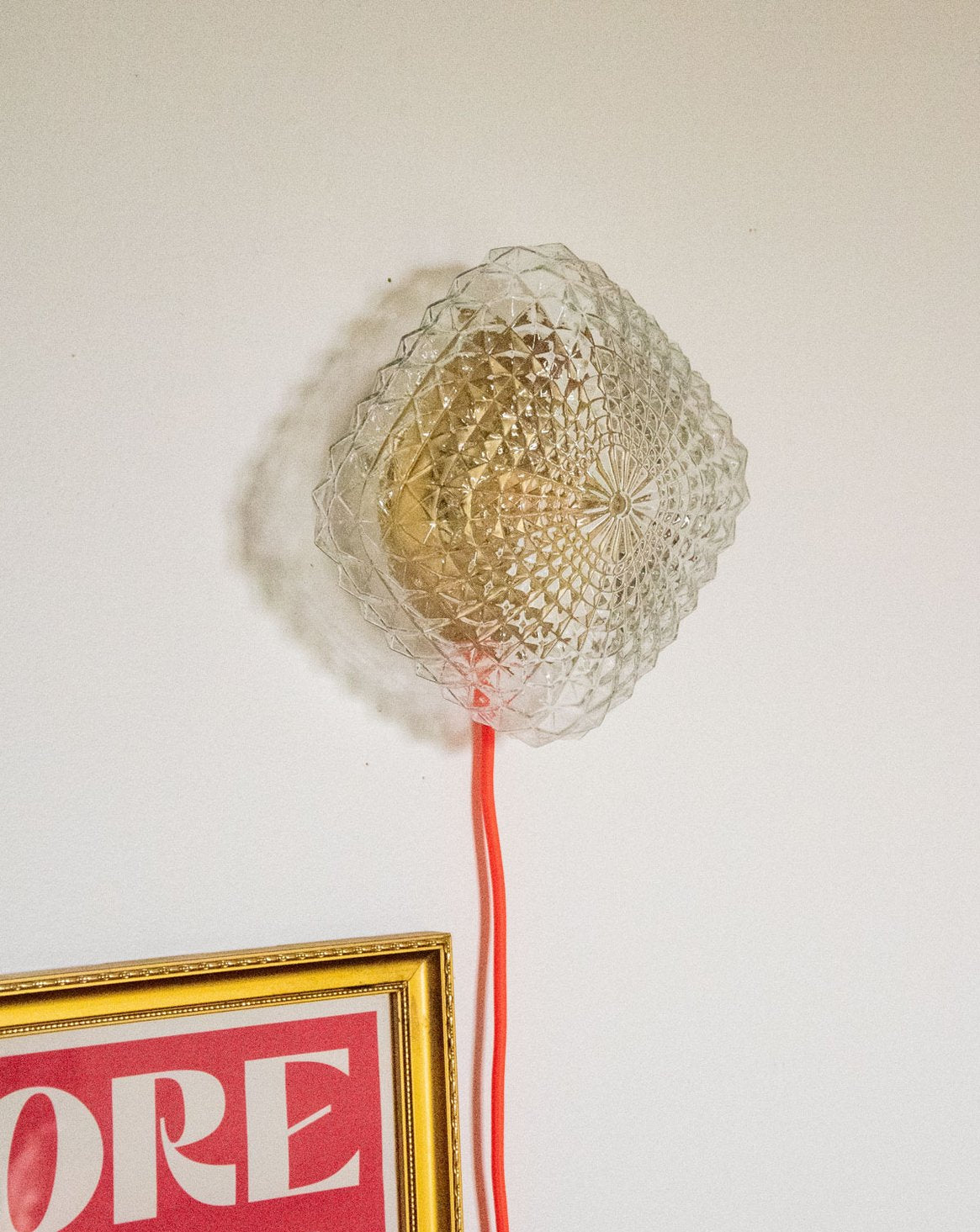 Découvrez cette lampe d'ambiance au halo doux, pièce unique entièrement restaurée par un savoir-faire artisanal. Son verre en forme de losange texturé et son intérieur repeint avec une réflexion dorée diffusent une lumière chaude (ampoule G9 fournie, 2700K) ; l'électricité a été refaite à neuf et la lampe respecte les normes CE, prête à l'usage sur prise grâce au câble de 3 m et son interrupteur au pied. Elle se pose ou s'accroche sans arrivée murale, idéale pour une chambre, une entrée ou un coin lecture. Le socle blanc, le câble rose et les patins neufs lui confèrent une allure sobre et contemporaine, tandis que son format compact s'intègre aisément sur une console ou une table de chevet.