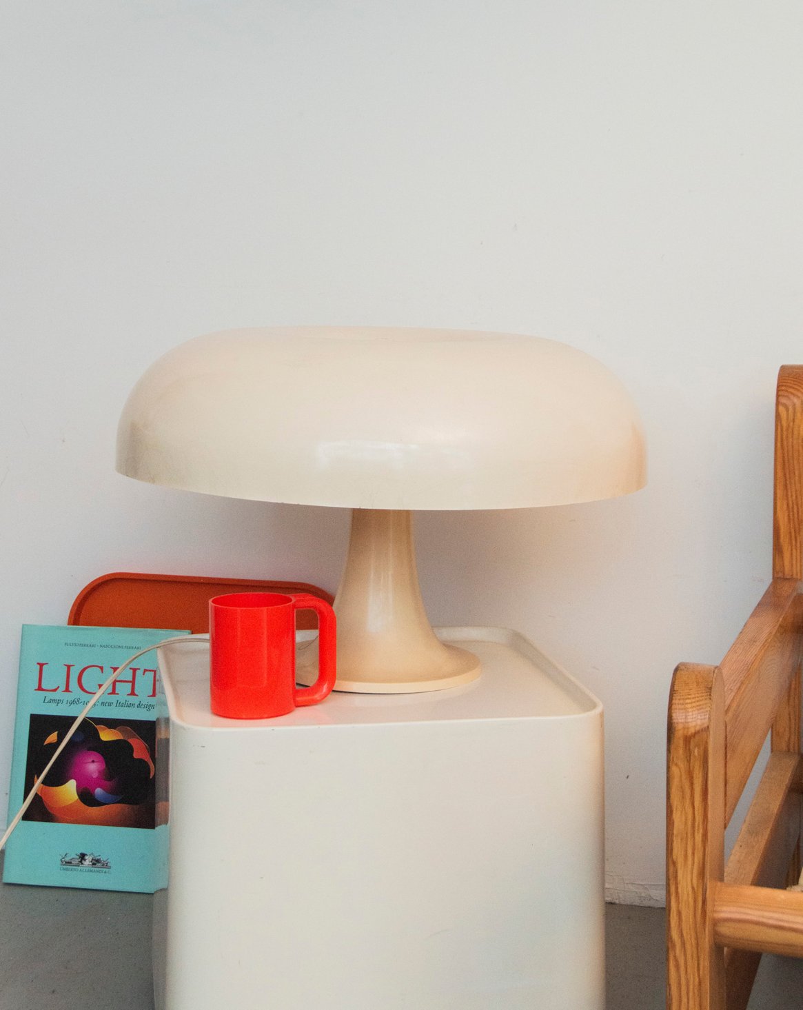 Adoptez la lampe Nesso modèle Artémide en fibre de verre, une pièce au design organique qui diffuse une lumière douce et enveloppante grâce à ses quatre ampoules. Sa silhouette basse et ample s'installe naturellement comme point focal sur une table basse ou un buffet, mêlant esthétique vintage et allure contemporaine. Le matériau translucide met en valeur des reflets subtils pour créer une ambiance chaleureuse et tamisée. Quelques traces de patine présentes.