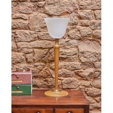 Lampe à poser en bois et verre n°573