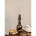 Découvrez cette lampe à huile en laiton, au profil élancé qui diffuse une lumière chaleureuse et feutrée. Sa hauteur importante et sa profondeur réduite lui confèrent une présence verticale discrète, idéale pour un coin lecture ou pour animer une console, tandis que la connexion pour ampoule à baïonnette permet une adaptation aux usages contemporains. L'estampille et la signature sous la base révèlent un travail soigné et apportent une touche d'authenticité à l'ensemble.