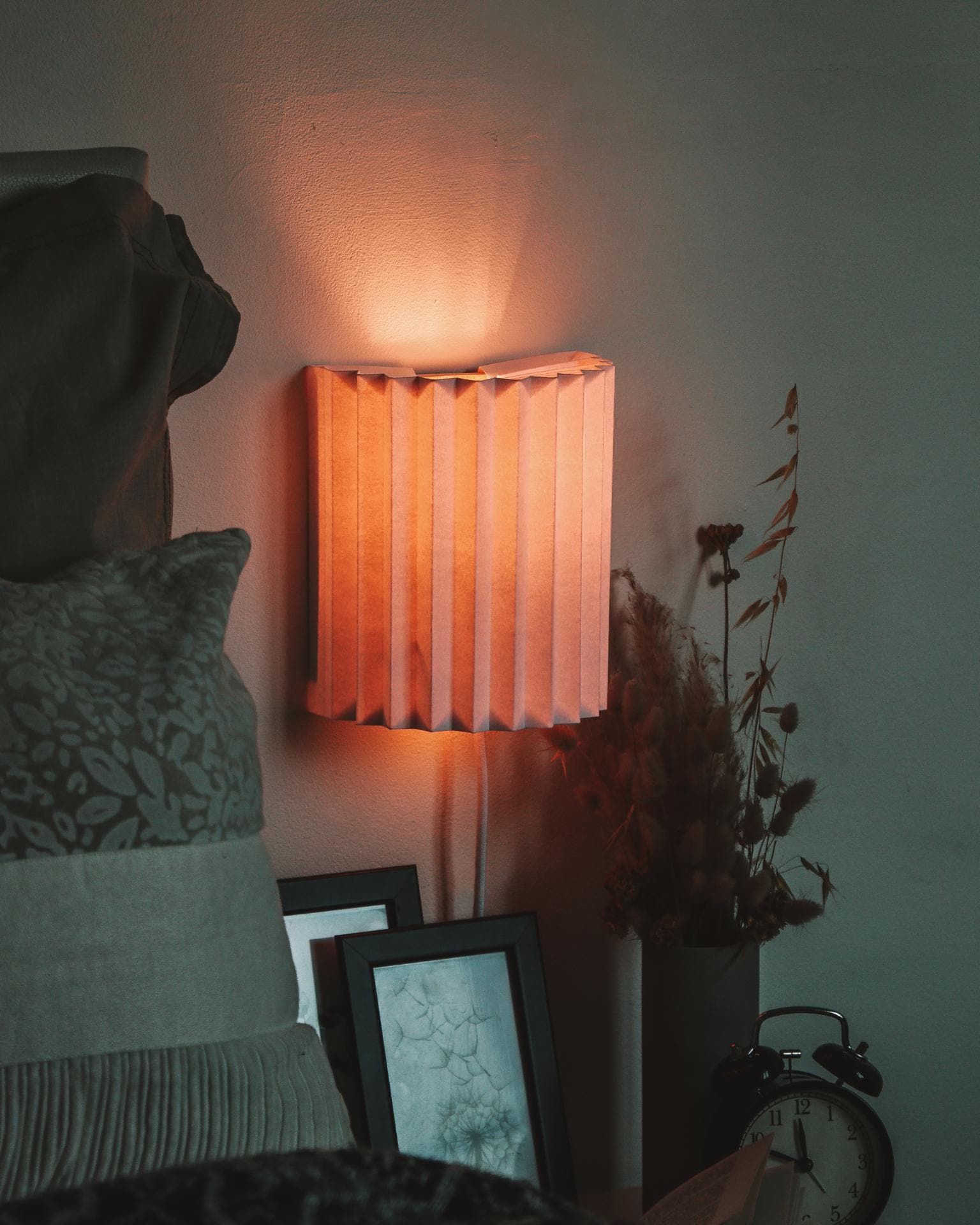 Son design en papier plissé allie le minimalisme d’inspiration japonaise à l’élégance contemporaine, ce qui en fait un choix parfait pour les chambres, les salons ou les coins lecture.