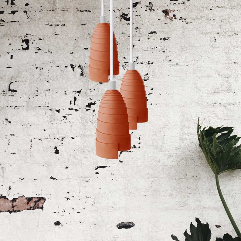 Luminaire en béton couleur terracotta accessoires blancs  En savoir plus
