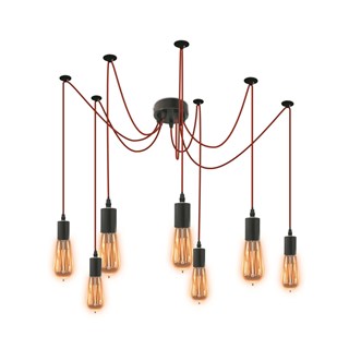 Suspension araignée 7 ampoules câble rouge