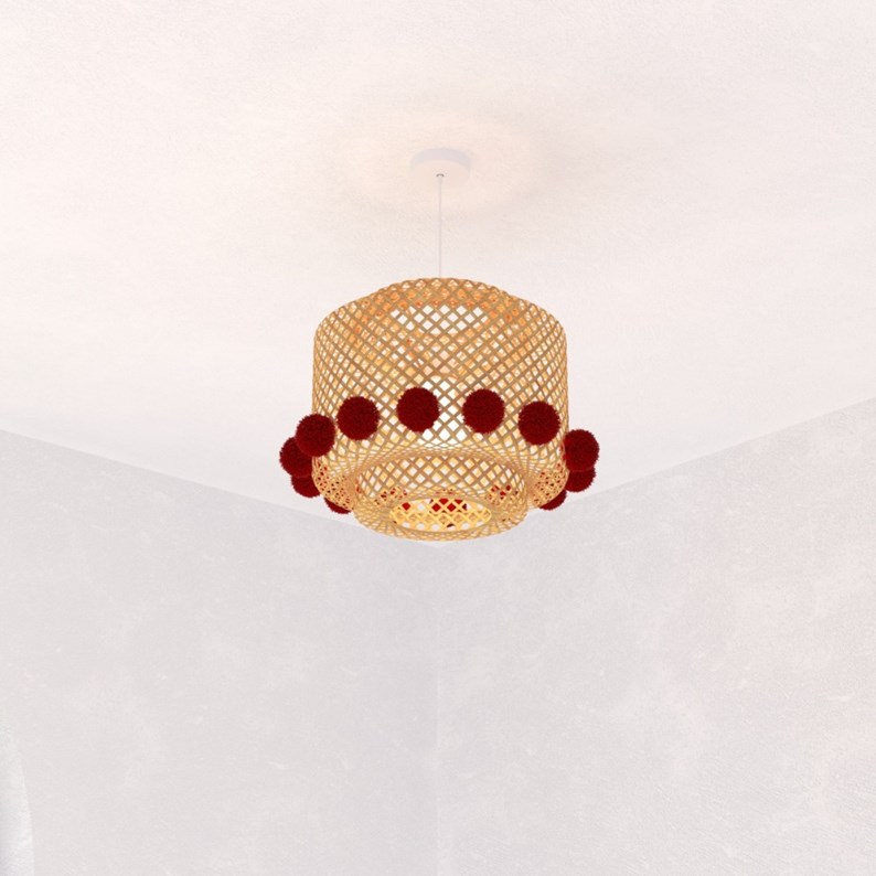 Changez radicalement votre intérieur avec cette très belle suspension en bambou avec pompons . Son design très aérien et sa noble matière en ferons une pièce maitresse de votre décoration!