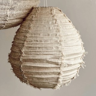 Suspension Wabi Sabi 100% lin fabriquée artisanalement dans un petit atelier balinais.