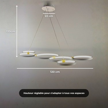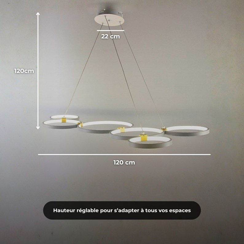 Le design contemporain de la Suspension Heim, caractérisé par son arrangement en multiples anneaux lumineux, apporte une touche de modernité et d’élégance à votre intérieur. Chacun des anneaux contribue à une composition visuelle dynamique, qui s’intègre avec aisance dans une diversité de décors, rendant chaque espace à la fois accueillant et esthétiquement agréable.