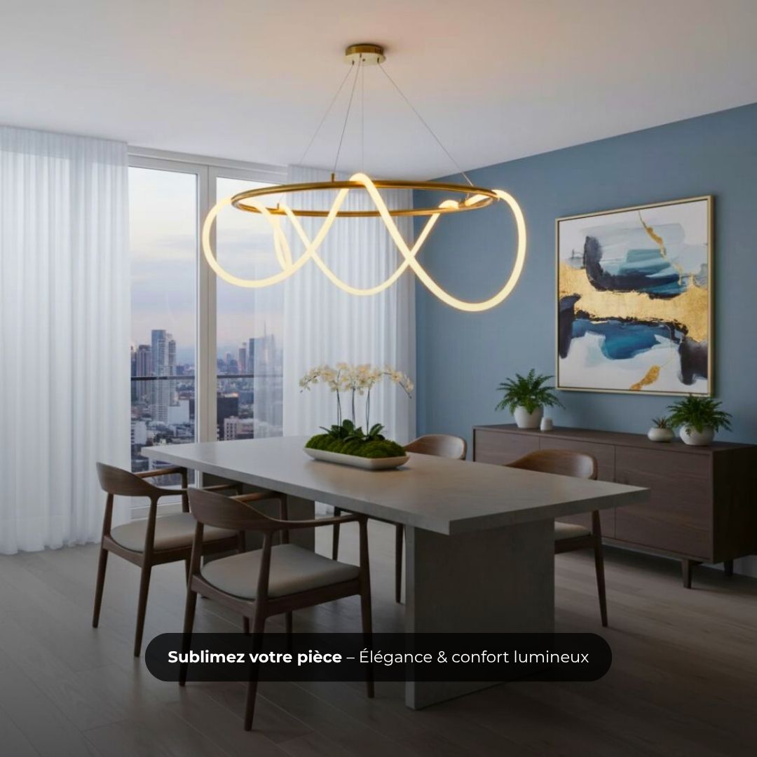 La Ninga se caractérise par une construction robuste en fer, présentant une forme circulaire agrémentée de lignes LED souples qui se croisent en un design harmonieux et contemporain. Le contraste entre le métal durable et les courbes lumineuses apporte une touche d’élégance industrielle et de raffinement moderne à tout intérieur.