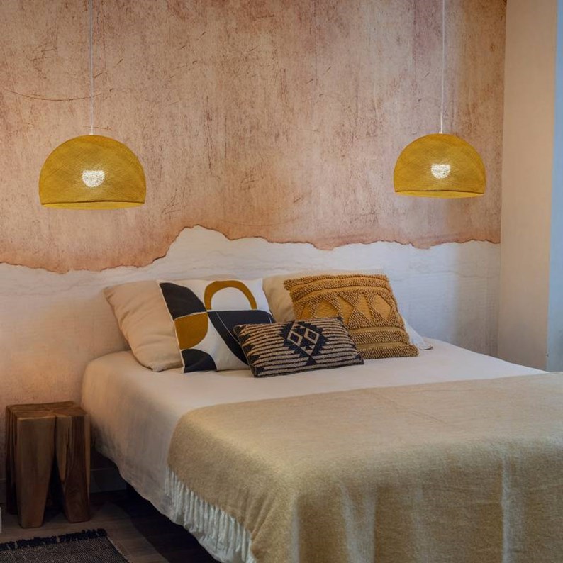 Les coupoles de La case de cousin Paul sont toutes tissées à la main, chaque abat-jour est une pièce unique. Leur tissage offre une régularité et un aspect très soigné.