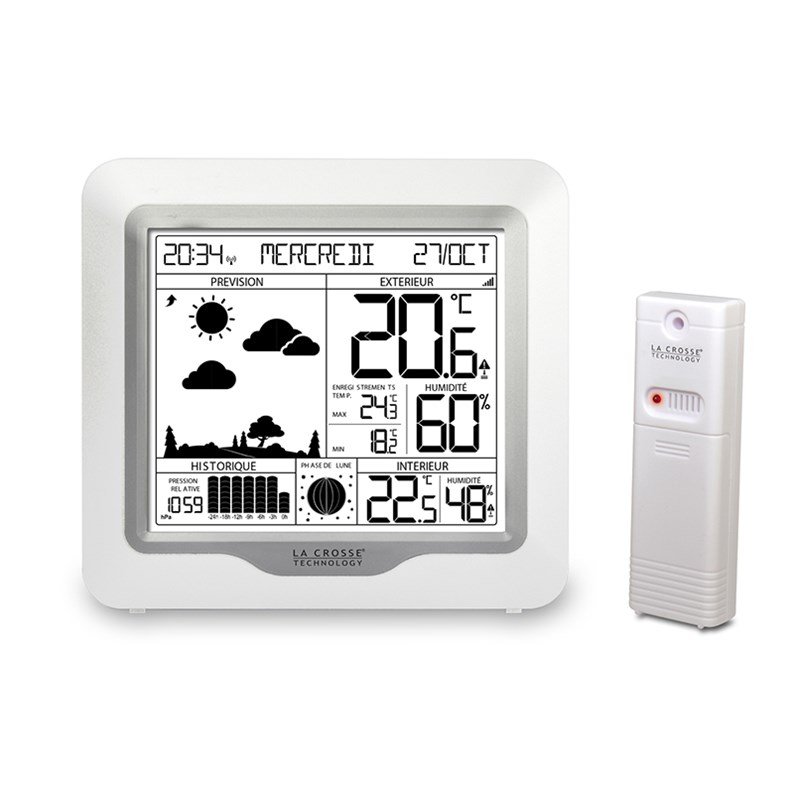 Capteur WSTX141TH-BV3 inclus. Cette station peut gérer 1 seul capteur extérieur.