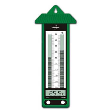 Avec cet élégant thermomètre électronique vert mini-maxi d'INOVALLEY , marque française leader en matière de mesure environnementale (design français), vous pourrez sans souci et sur un double écran LCD très visible obtenir les informations précises et fiables sur la température environnante et ses variations !