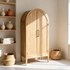 Armoire en bois d'orme avec portes cintrées et étagères intérieures. Design naturel et élégant, idéale pour la vaisselle, le linge ou les objets déco.