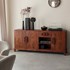 Buffet en acacia massif – collection Quilla. Design chaleureux avec poignées sculptées en anneaux, grand espace de rangement avec portes, niches et tiroir central. Un meuble authentique et décoratif pour sublimer votre intérieur.