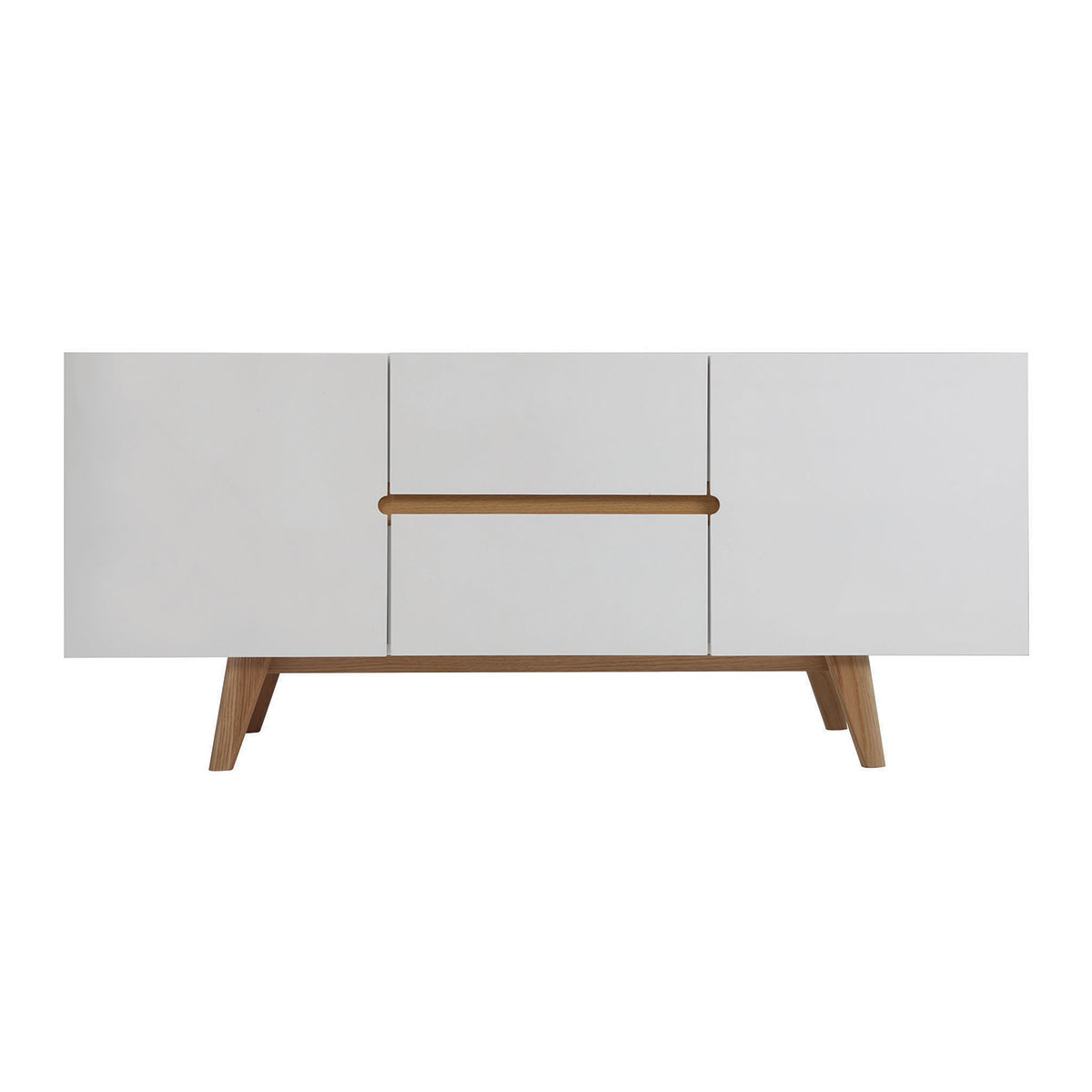 Avec sa structure en panneaux de fibres de bois mélaminé finition blanc laqué et bois clair , ce buffet scandinave affiche une note de modernité qui ne manquera pas de ravir les afficionados de style contemporain ! Les détails du piètement en frêne massif et des poignées mélaminé finition bois clair viennent réchauffer l'uniformité du blanc brillant. Un résultat parfaitement réussi, voilà une association qui donne du caractère à cet élégant meuble de rangement.