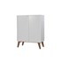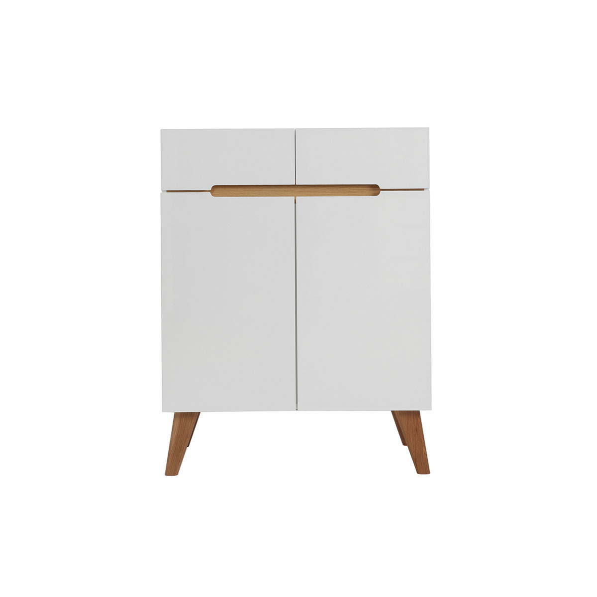 Buffet blanc brillant et finition bois clair 2 portes 2 tiroirs l80cm melka