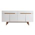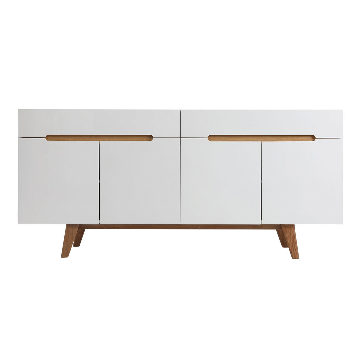 Buffet blanc brillant et finition bois clair 4 portes 2 tiroirs l180 cm melka
