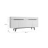 Avec sa structure en panneaux de fibres de bois mélaminé finition blanc laqué et bois clair et son piètement en frêne massif , ce buffet en enfilade aux dimensions L180 x P42 x H83 cm dispose de nombreux rangements. Deux grands tiroirs (L83 x P33 x H16.5 cm) équipés d'une fermeture soft sont positionnés au niveau supérieur du meuble, tandis qu'au niveau inférieur les 4 portes battantes dissimulent deux grandes niches (L87 x P38 x H42 cm). Ces deux niches bénéficient chacune d'une tablette ayant une fonction d'étagère. Réglables en hauteur, elles vous permettent d'adapter vos rangements à votre vaisselle.