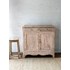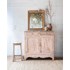 Offrez à votre intérieur ce buffet de campagne en bois à la patine rose douce, où l'esthétique vintage se marie à une praticité délicate. Son plateau en bois brut met en valeur objets et présentations tandis que deux tiroirs et une porte, derrière lesquelles se cachent une étagère et deux niches, proposent un rangement modulable pour vaisselle, linge ou accessoires, et la serrure fonctionnelle avec clé ainsi que le loquet soulignent son caractère authentique. Un trou dans un tiroir et quelques traces du temps qui racontent son histoire.