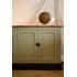 Adoptez ce buffet campagne en châtaignier au plateau bois naturel couleur miel, subtilement peint en vert sauge et rehaussé d'une base noire pour un contraste élégant. Ses proportions généreuses et son intérieur équipé d'étagères offrent un rangement fonctionnel pour vaisselle, linge ou objets du quotidien, tandis que ses deux double-portes se ferment par un verrou métallique qui souligne son caractère. Idéal dans une salle à manger ou une entrée, il diffuse une ambiance chaleureuse et authentique.