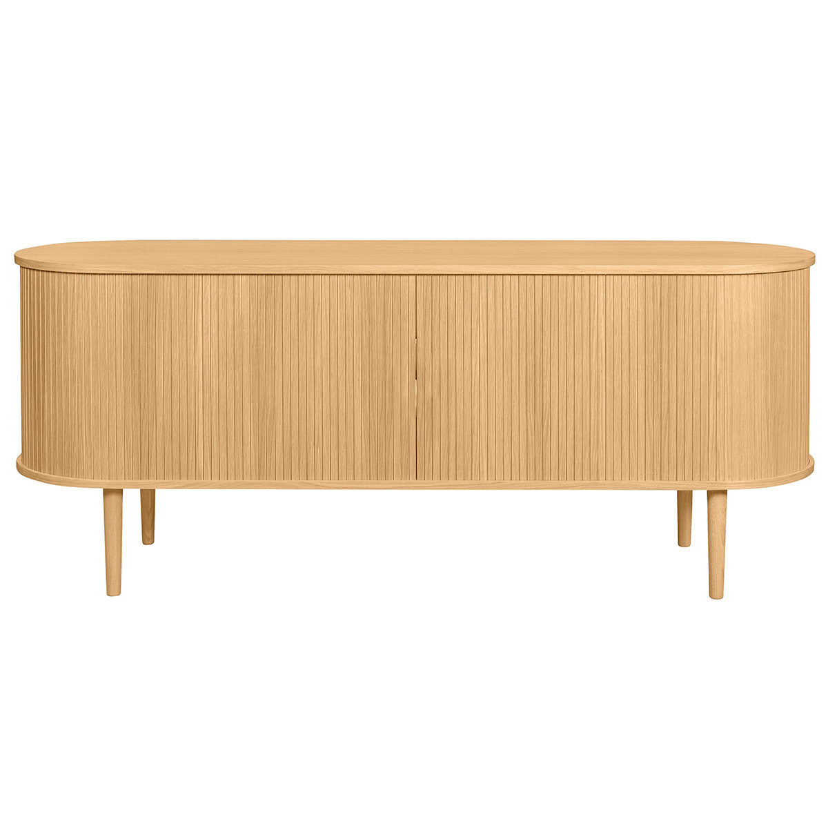 Ce qui le distingue ? Sa silhouette aux angles arrondis tout droit inspirée des années 70 ! Pour un look 100% vintage, il l'associe à deux belles portes coulissantes et des pieds fuselés . En plus d'apporter du cachet à votre intérieur, ce buffet en bois clair saura insuffler une note chaleureuse dans votre intérieur.
