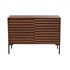 Ce buffet en manguier massif est issu d'un joli travail sur la matière. Ses façades sont sculptées directement dans le bois. Les saillies dessinent des lignes horizontales qui forment un motif répété ultra graphique. Conçu de manière artisanale avec le cachet unique du ""fait main"", ce buffet en bois foncé se distingue par son caractère à la fois authentique et très contemporain. La patine marron foncé appliquée sur ce meuble de rangement nourrit le bois tout en renforçant un peu plus son rendu chaud et naturel. On adore aussi l'association de ce bois exotique avec le métal utilisé pour le piètement.