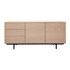 En panneaux de fibres de bois placage chêne , ce buffet en bois clair repose sur un élégant piètement en métal noir . Il deviendra vite la pièce maîtresse de votre intérieur, apportant rangement et design aux pièces de vie aussi fonctionnelles que stylées ! Pour un rendu déco du plus bel effet, il suffira de placer sur le large plateau quelques cadres, une plante verte et une lampe à poser design .