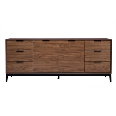 Fort d'une fonctionnalité infaillible, ce long buffet de 180 cm multiplie les niches et les tiroirs pour accueillir tous les essentiels de la maison. Ses deux portes qui dissimulent 4 grandes niches sont encadrées par 6 tiroirs . Vaisselle, linge, documents... Ce grand buffet ultra pratique recevra toutes les affaires de la famille !