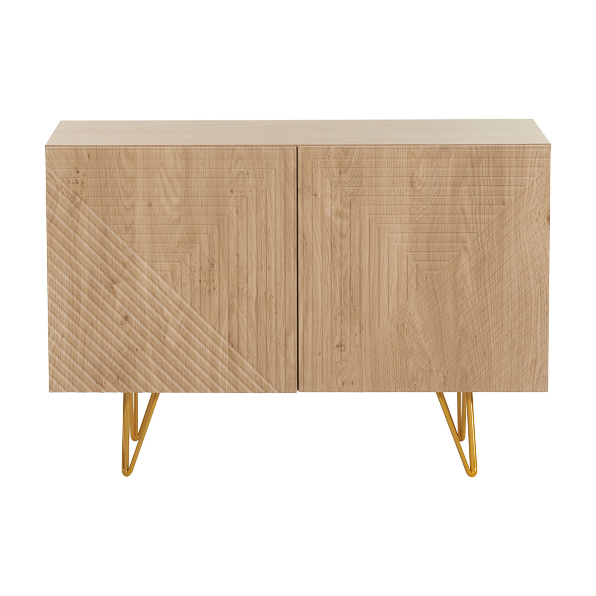 Buffet gravé finition bois clair chêne et métal doré 2 portes l107 cm ozen