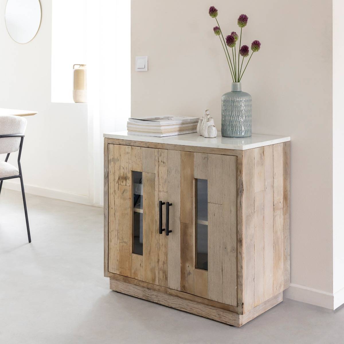 Buffet de la collection Damian, conçu en bois de manguier avec un plateau en marbre blanc. Doté de rangements fermés, il associe la chaleur naturelle du bois à l'élégance du marbre pour créer un meuble design, pratique et intemporel, idéal pour une salle à manger ou un salon.