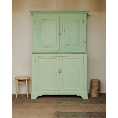 Adoptez ce buffet de campagne en deux corps au charme authentique, patiné d'un vert menthe qui habille la pièce d'une note douce et lumineuse. Construit en bois, il propose un aménagement pensé — étagères dans la partie haute, trois casiers et une tablette dans la partie basse — pour organiser vaisselle, linge ou objets du quotidien. Les serrures à loquet fonctionnelles ajoutent une touche d'authenticité et de sécurité, tandis que ses proportions en font un meuble à la fois pratique et décoratif. Quelques traces du temps qui participent à son charme.