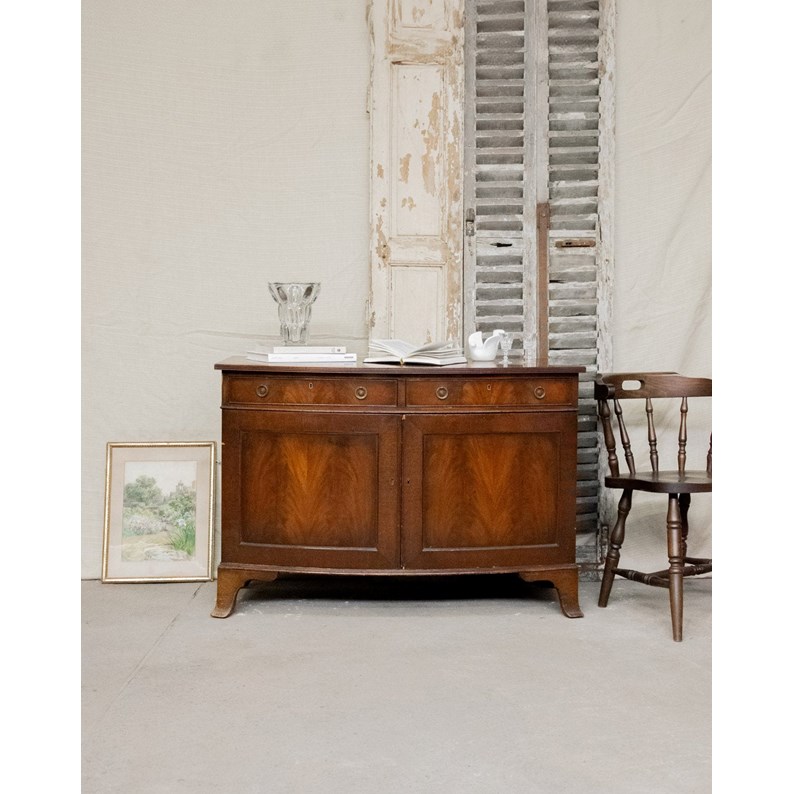 Sublimez votre intérieur avec ce buffet deux portes et deux tiroirs au caractère discret, doté d'accroches circulaires en laiton et de fermetures à clé qui protègent vos indispensables. Une étagère intérieure optimise le rangement pour la vaisselle ou les textiles du quotidien. Son format généreux trouve sa place en salle à manger ou dans une entrée. Traces du temps et accroc sur l'angle de la porte gauche.