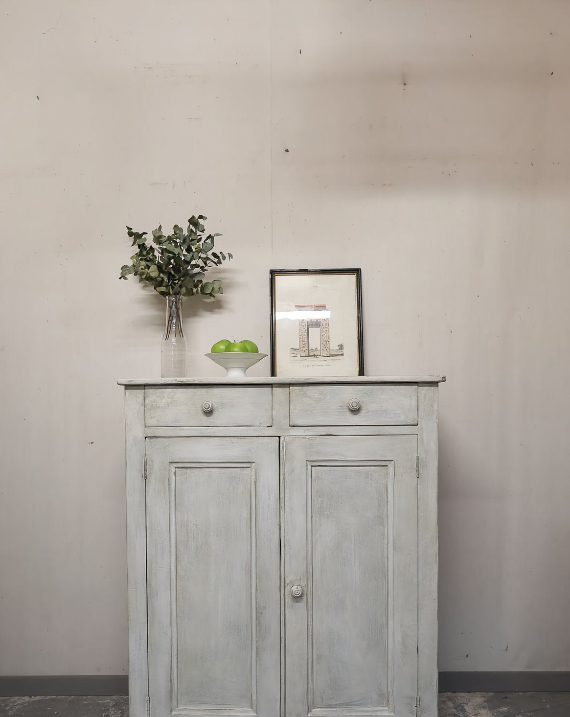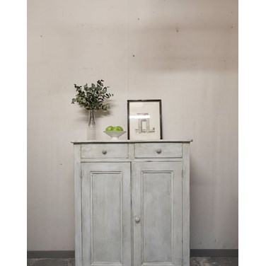 Découvrez ce buffet de campagne ancien au bois patiné blanc-gris, restauré et soigneusement nettoyé. Sa silhouette généreuse offre un large volume de rangement réparti entre étagères fixes et deux tiroirs pratiques, parfait pour la vaisselle, le linge de table ou comme meuble d'appoint dans une cuisine ou une entrée. Robuste et costaud, il installe une atmosphère chaleureuse et authentique, empreinte d'une élégance sobre.