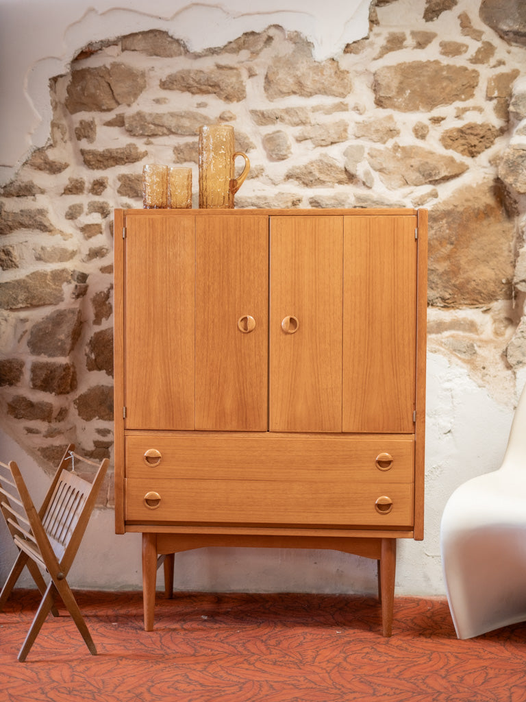 Découvrez ce magnifique buffet scandinave des années 60, avec sa porte papillon emblématique qui apporte une touche de style rétro à votre intérieur. Doté d'une étagère intérieure pratique et de deux tiroirs spacieux, il allie fonctionnalité et esthétisme. Sa conception en bois chaleureux et ses lignes épurées en font un meuble incontournable pour les amateurs de décoration vintage. Ajoutez ce buffet à votre décoration pour une ambiance scandinave, authentique et accueillante.