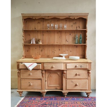 Adoptez ce grand buffet de campagne en pin massif, pensé comme un meuble à tiroirs d'inspiration anglaise et doté d'une partie amovible pour moduler le rangement. Ses sept tiroirs et la porte centrale offrent des compartiments généreux, parfaits pour organiser vaisselle, linge ou objets du quotidien, tandis que la silhouette élancée et les proportions équilibrées apportent une présence chaleureuse et authentique à la salle à manger ou à l'entrée. Le bois patiné révèle une finition sobre qui invite à une décoration conviviale.