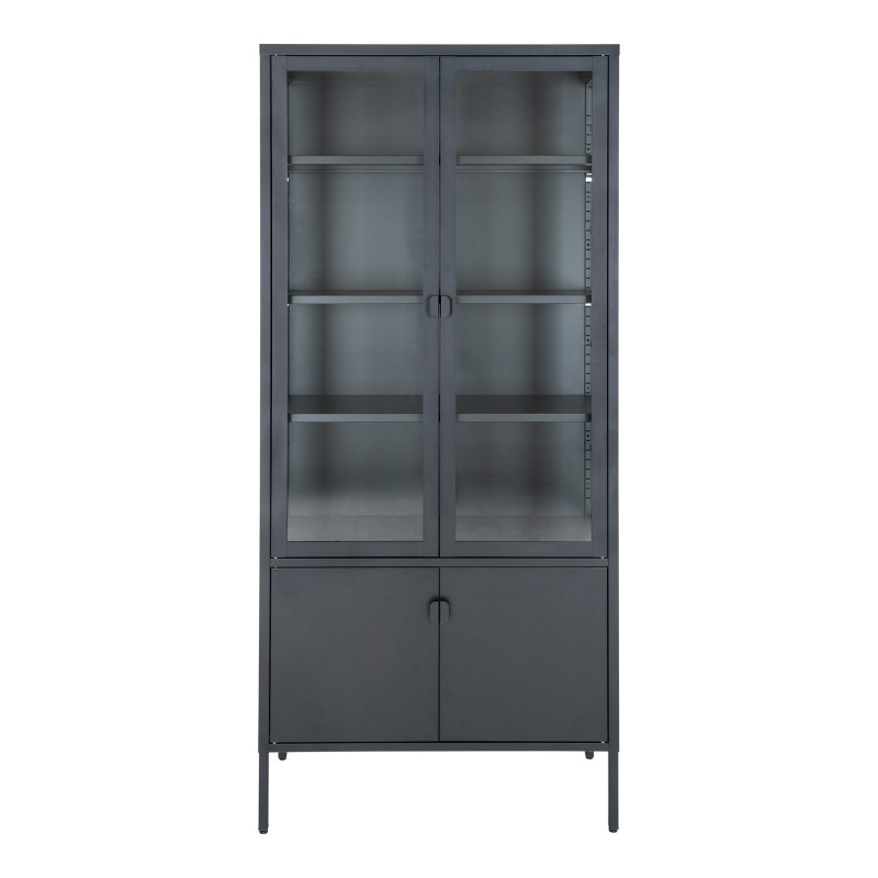 Maine-vitrine 4 portes vitrées acier noir 80x180 cm