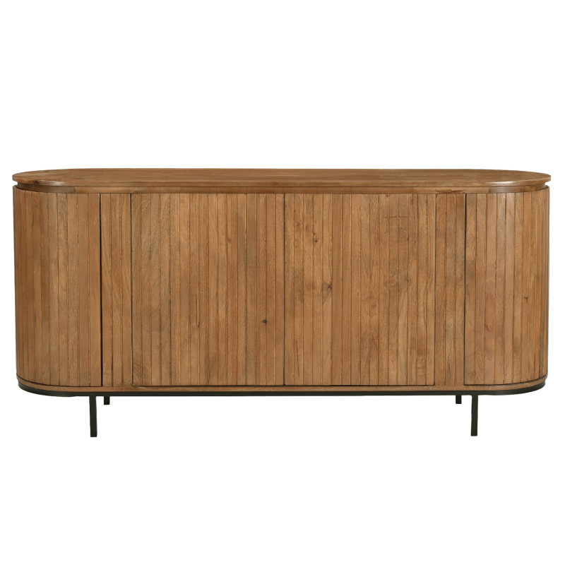 Collection artisanale façonnée à la main, la garantie d'une pièce unique. Les meubles de la collection MENTON sont fabriqués en bois de manguier raffiné et sont disponibles dans les finitions noyer et naturel. Caractéristique de cette collection, la forme elliptique et le galbe des cotés alliés à un jeu vertical de lignes, clin d'œil au rétro chic ! Le buffet présenté en finition naturelle, 180 cm. Tous nos meubles sont intégralement fabriqués en Bois massif à la main de façon artisanale. Les essences de bois utilisées sont certifiées.Ils sont livrés assemblés, à l'exception des tables Livraison dans la pièce de votre choix, reprise des emballages sur demande.