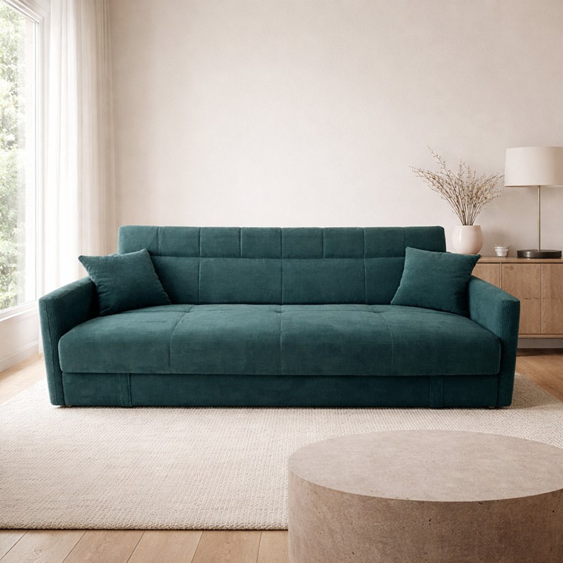 Adare canapé convertible avec coffre en velours côtelé vert 3 places