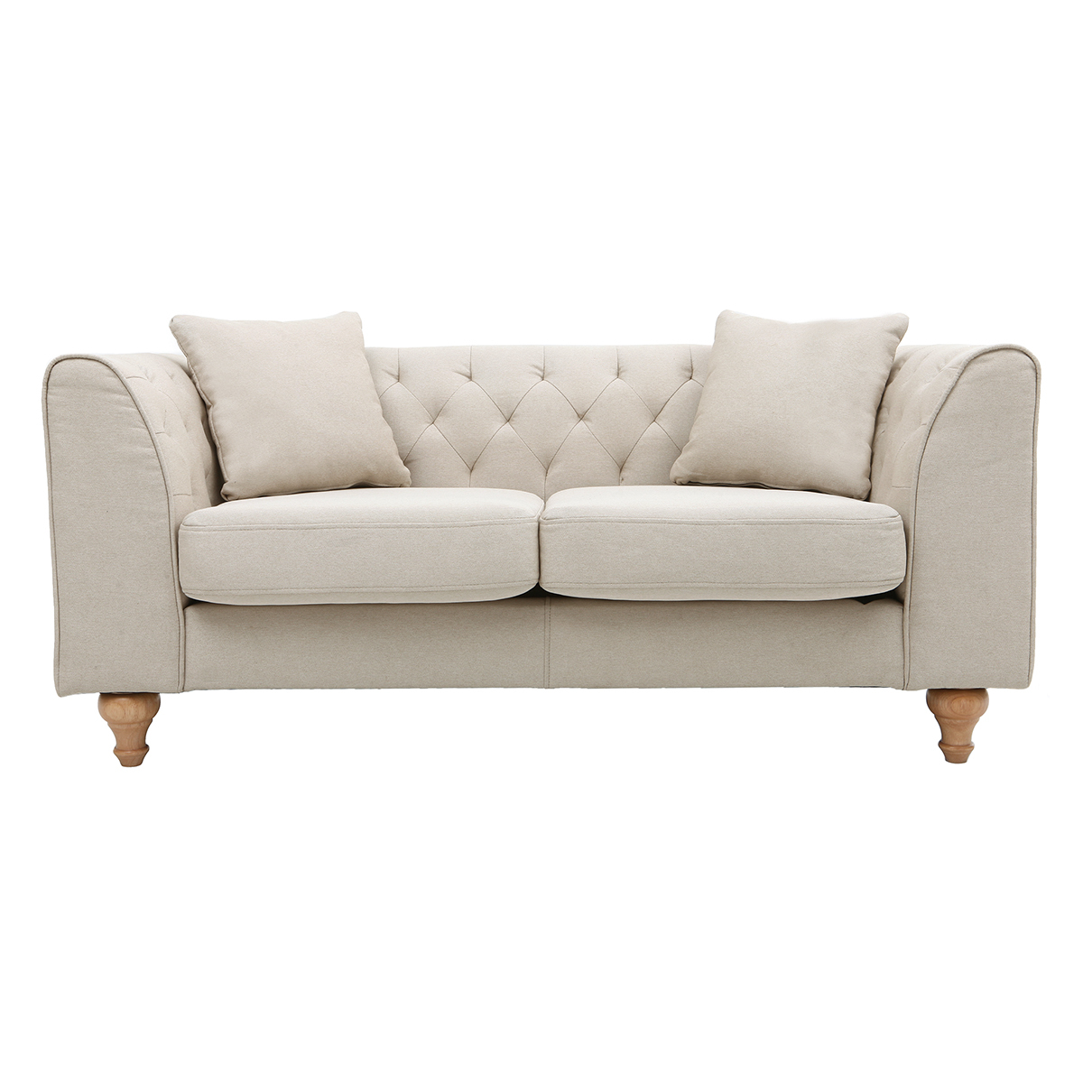 Canapé 2 places capitonné en tissu beige et bois clair montaigne