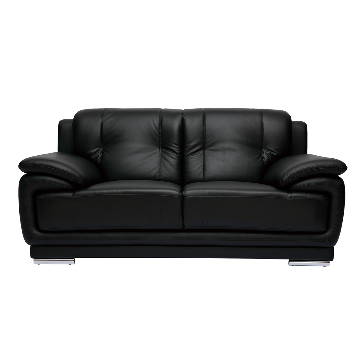 Canapé 2 places en cuir noir et acier chromé tamara
