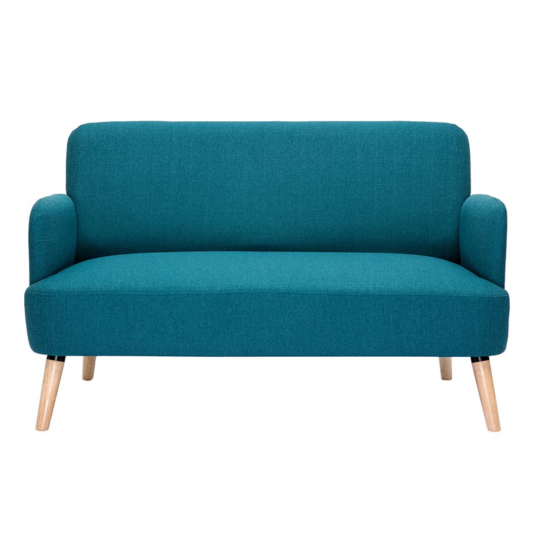 Canapé 2 places en tissu bleu canard et bois clair isko