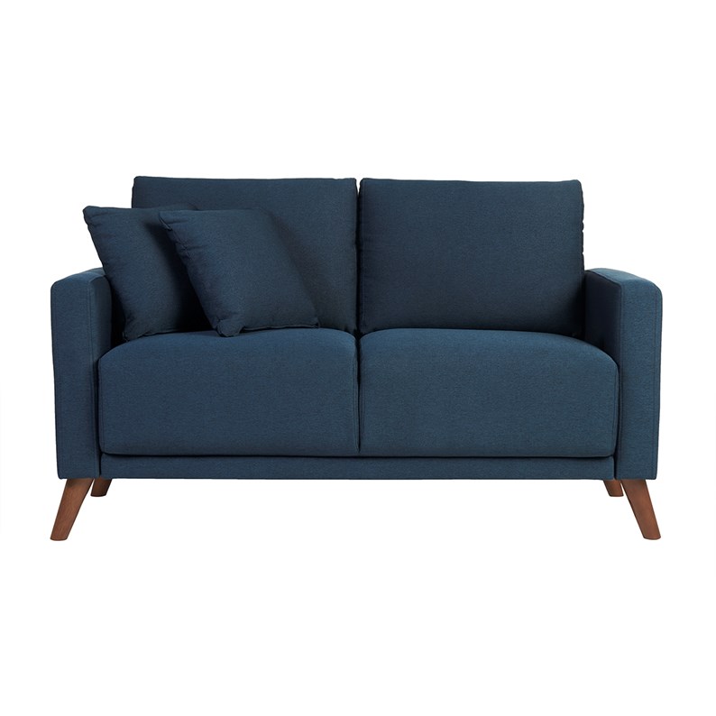Canapé 2 places en tissu bleu foncé et bois foncé munik